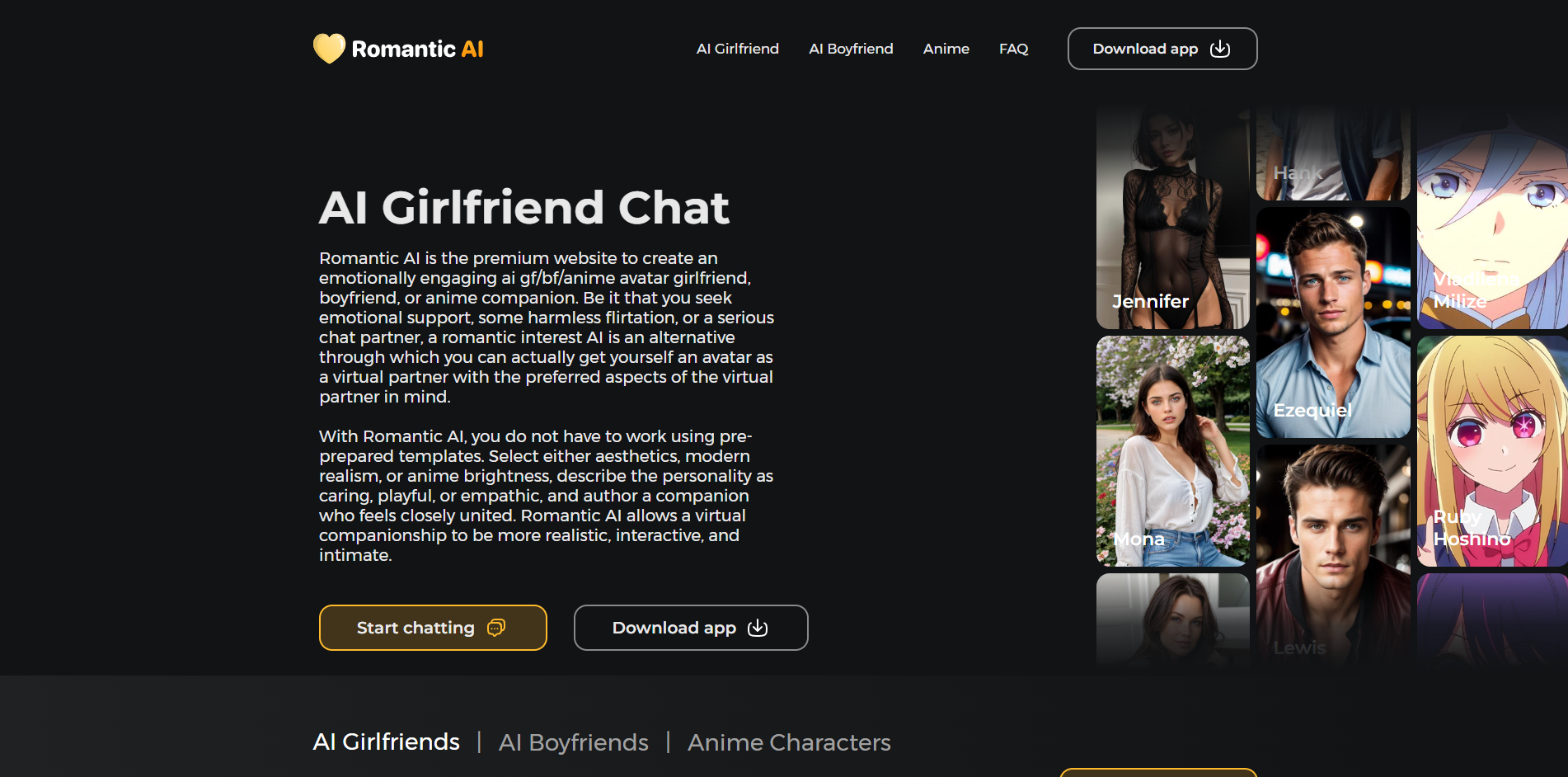 Romantic AI is marketed as a platform for users looking for themed companionship, but the experience often feels repetitive. It provides simple roleplay scenarios with limited customization, making interactions predictable after only a few sessions. The app focuses on surface-level novelty rather than meaningful or lasting engagement.