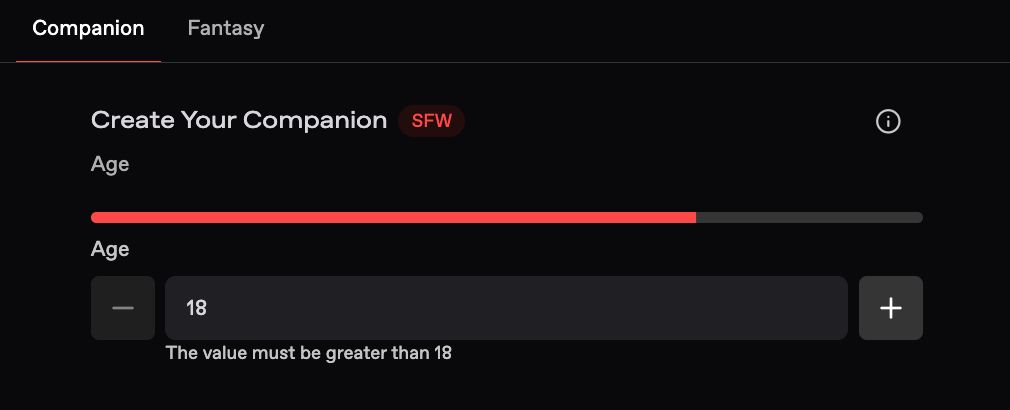 Type in the age you’d like her to be. (Note: Anyone under 18 is not allowed.)